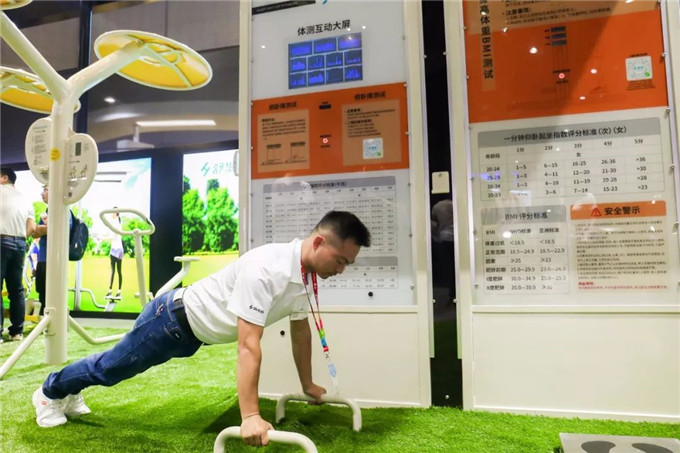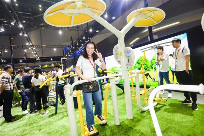 參展觀眾體驗舒華智能體育公園產(chǎn)品