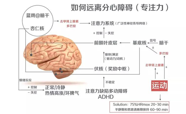 分泌多巴胺和去甲腎上腺素,提高注意力。