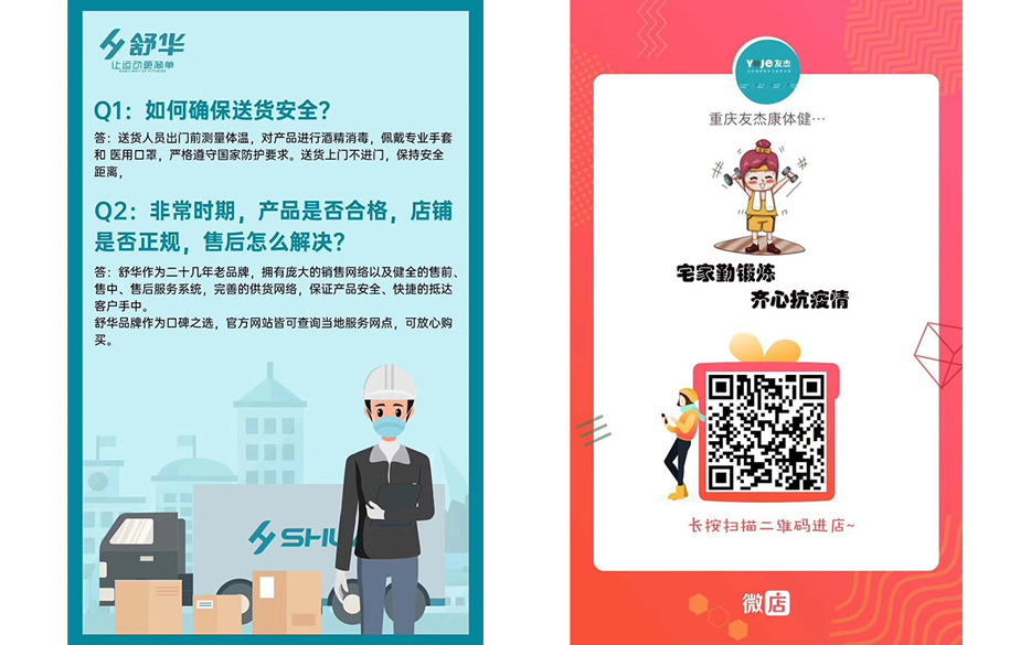 為此,友杰康體在此期間,專門抽調(diào)值班人員,負(fù)責(zé)將顧客所需的健身器材,送貨到家。為了保證疫情期間的送貨安全,友杰康體每日對負(fù)責(zé)送貨的人員進(jìn)行健康監(jiān)測,保證送貨員工身體健康,同時(shí),對每日送貨人員送貨上門前進(jìn)行嚴(yán)格防護(hù),佩戴口罩,手套進(jìn)行防護(hù),對每件配送貨品進(jìn)行出庫消毒,保證貨品安全到達(dá)客戶家中。