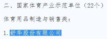 2017年1月12日,國(guó)家體育總局下發(fā)《國(guó)家體育總局體育經(jīng)濟(jì)司關(guān)于2016年國(guó)家體育產(chǎn)業(yè)基地評(píng)選結(jié)果公示的通知》,這一《通知》向社會(huì)各屆公布了2016年國(guó)家體育產(chǎn)業(yè)基地評(píng)選結(jié)果,根據(jù)《國(guó)家體育產(chǎn)業(yè)基地管理辦法(試行)》和《國(guó)家體育總局關(guān)于進(jìn)一步加強(qiáng)國(guó)家體育產(chǎn)業(yè)基地建設(shè)工作的通知》,經(jīng)體育總局批準(zhǔn)認(rèn)定,并公示無(wú)異議,2016年國(guó)家體育產(chǎn)業(yè)基地評(píng)審結(jié)果正式確定。國(guó)家體育總局已于2月6日下達(dá)批復(fù),正式命名新一批11個(gè)國(guó)家體育產(chǎn)業(yè)示范基地,正式認(rèn)定新一批22個(gè)國(guó)家體育產(chǎn)業(yè)示范單位和12個(gè)國(guó)家體育產(chǎn)業(yè)示范項(xiàng)目。舒華股份有限公司成為“國(guó)家體育產(chǎn)業(yè)示范單位”!