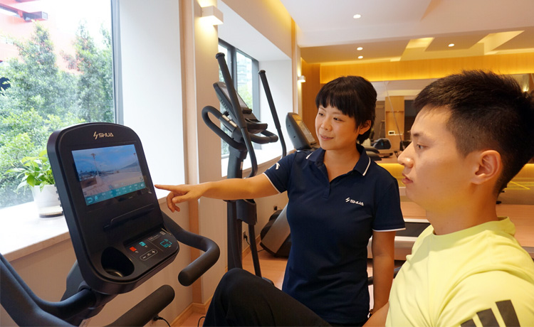 器材內(nèi)置虛擬跑景,可根據(jù)個(gè)人或團(tuán)隊(duì)喜好定制跑景。多彩觸屏,可實(shí)現(xiàn)閱讀,影音,游戲,購(gòu)物,豐富健身生活。也可使用APP預(yù)約課程使用器材鍛煉,生成健身數(shù)據(jù)報(bào)告,健身數(shù)據(jù)推送微信。
