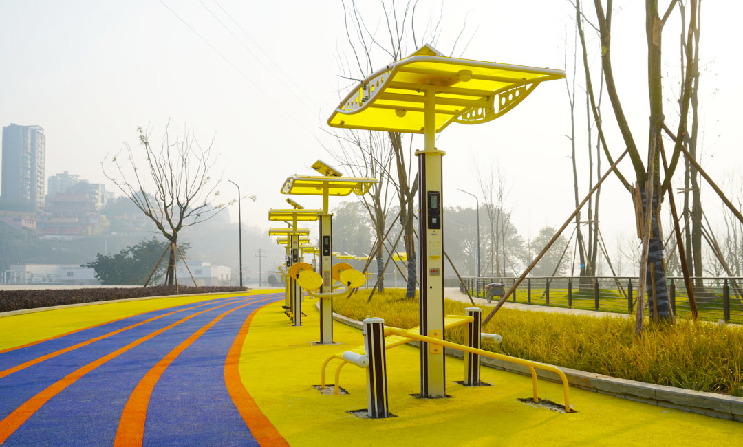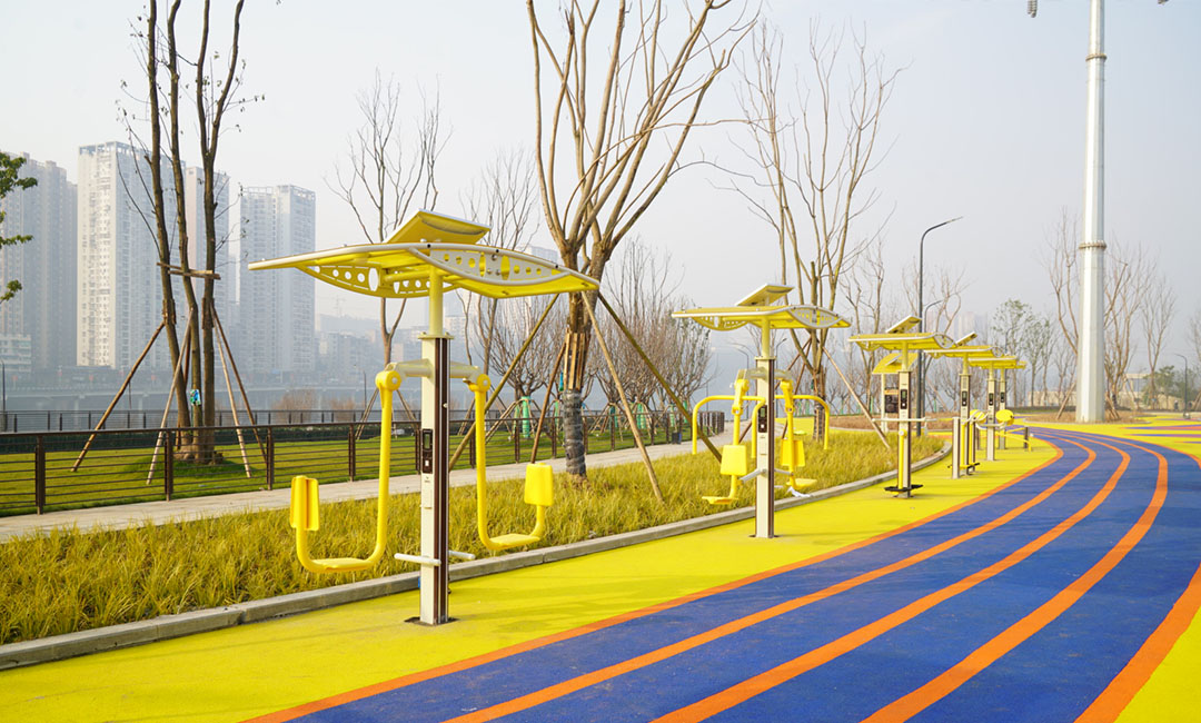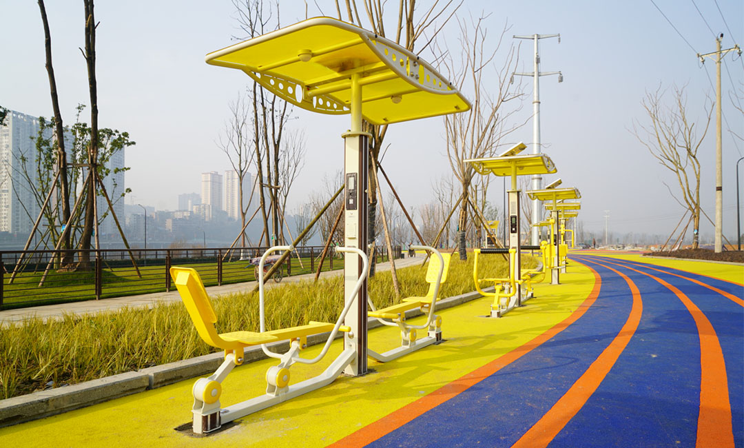 園區(qū)內(nèi)的智能健身路徑是最為亮眼的一道風(fēng)景線,脫離傳統(tǒng)健身路徑的單一性,此次,友杰體育為金福島體育公園所選用的是舒華二代智能健身路徑,其中的雙位智能健身車,是非常有趣味的一款器材,該器材專門為兩個(gè)人比賽用的互動(dòng)競(jìng)賽型健身車。當(dāng)兩人開始比賽時(shí),跑道上的燈帶會(huì)隨著運(yùn)動(dòng)距離的增加而疊加亮起,讓運(yùn)動(dòng)更具互動(dòng)性,也更有趣味。這僅僅是其中一種,其余的二代智能健身路徑也各有千秋,可供雙人同時(shí)使用。更為有意思的是,這些器材還采用綠色太陽能進(jìn)行供電,配套智能模塊。系統(tǒng)后端可收集器材的使用頻率、時(shí)長(zhǎng)、卡路里、區(qū)域、人次、時(shí)間段等用戶運(yùn)動(dòng)數(shù)據(jù),并生成各種維度的統(tǒng)計(jì)分析,為政府提供戶外場(chǎng)地設(shè)施利用率監(jiān)測(cè)、全民健身情況及科學(xué)決策分析等大數(shù)據(jù)服務(wù)。