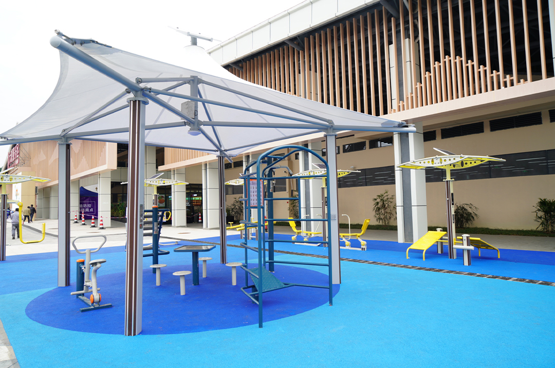 路徑采用舒華最新的智能路徑系列,旅客可根據(jù)自己需求調(diào)節(jié)器材阻力,提升鍛煉效果。遮陽棚采用進(jìn)口材質(zhì)PC耐力板,遮陽棚上安裝太陽能板。每一臺都配有LCD顯示屏,并且能語音播報(bào)運(yùn)動數(shù)據(jù)。