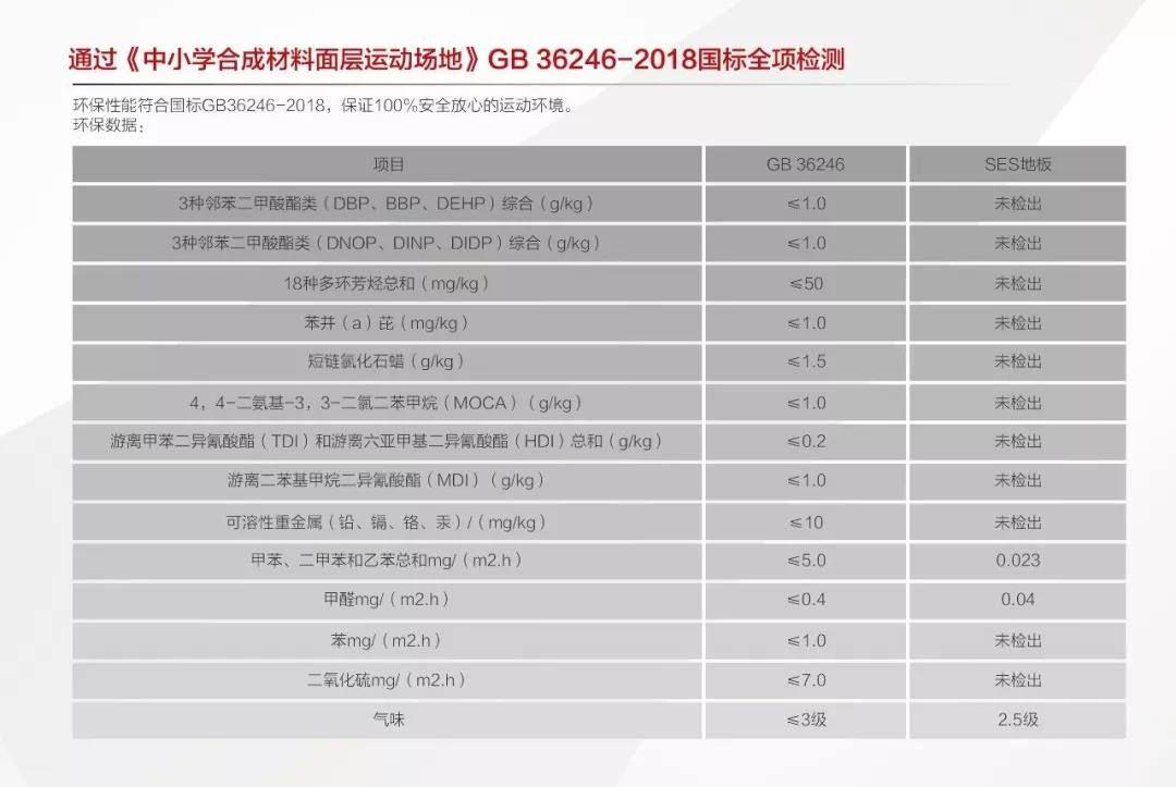 作為校園的產(chǎn)品,這款產(chǎn)品的一大優(yōu)勢就是非常環(huán)保。在最權(quán)威的國標(biāo)檢查中,各種有害物質(zhì)均未被檢出,可以讓學(xué)生在一個環(huán)保的環(huán)境中盡情釋放運動的激情。