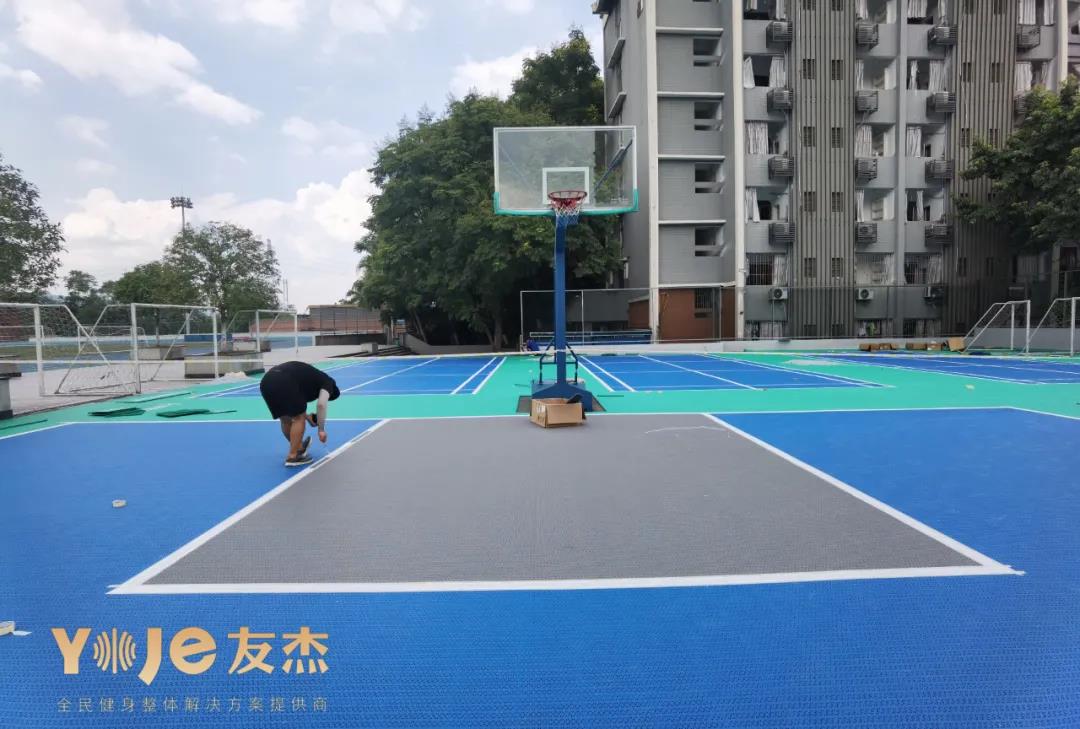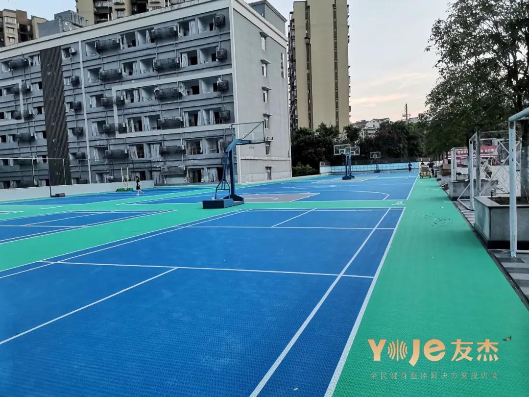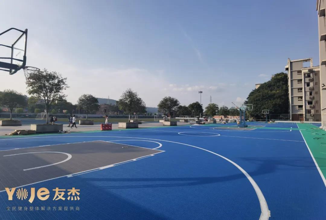 經(jīng)過友杰最專業(yè)的施工團(tuán)隊不懈的努力,大家來看看最終呈現(xiàn)的驚艷效果。綠色和藍(lán)色的搭配,讓整個球場顯得干凈而不失活力,不僅為校園平添一抹風(fēng)景,也讓同學(xué)們在上面可以更放心,安全的運動。