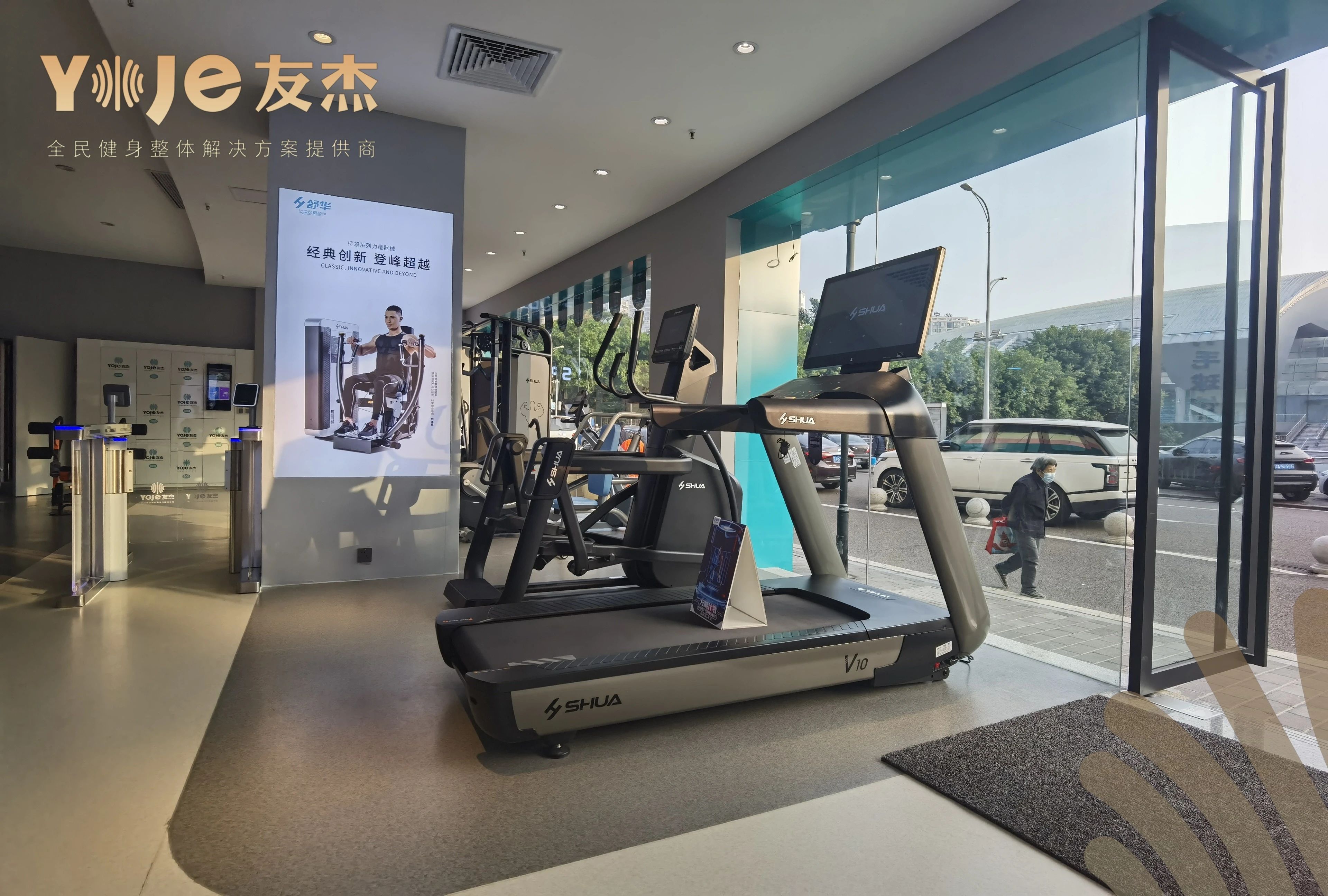 舒華全新一代重慶奧體中心旗艦店通過智能化管理健身流程,提升用戶體驗。從顧客進入旗艦店那一刻起,系統(tǒng)自動人臉識別顧客身份,并且使用器材的過程中都可以全稱記錄健身數(shù)據(jù)。