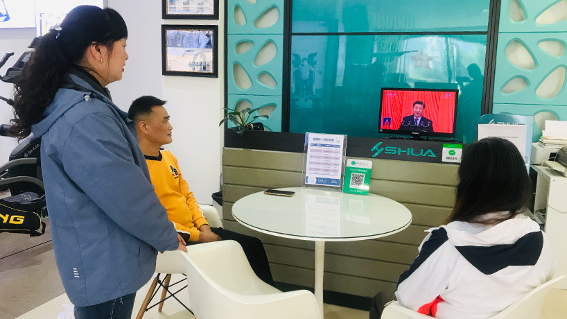 上午9時(shí)不到,友杰體育全體員工就早早會(huì)聚到會(huì)議室,友杰各直營(yíng)門(mén)店的工作人員也準(zhǔn)時(shí)打開(kāi)電視,認(rèn)真觀看學(xué)習(xí)二十大的會(huì)議精神。開(kāi)幕會(huì)直播時(shí),在習(xí)近平總書(shū)記近2小時(shí)的報(bào)告過(guò)程中,會(huì)議現(xiàn)場(chǎng)不時(shí)自發(fā)響起熱烈的掌聲。