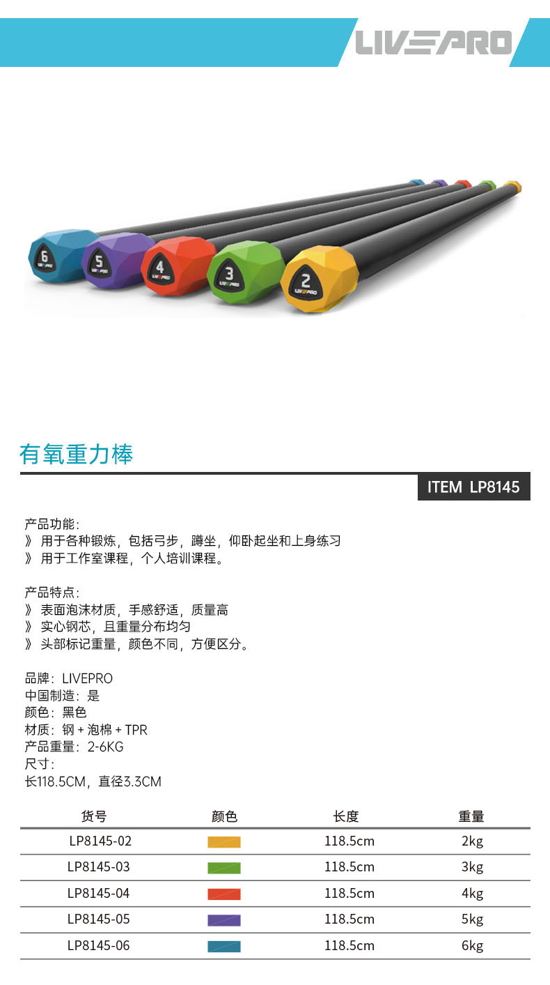 力珀/Livepro 有氧重力棒 LP8145