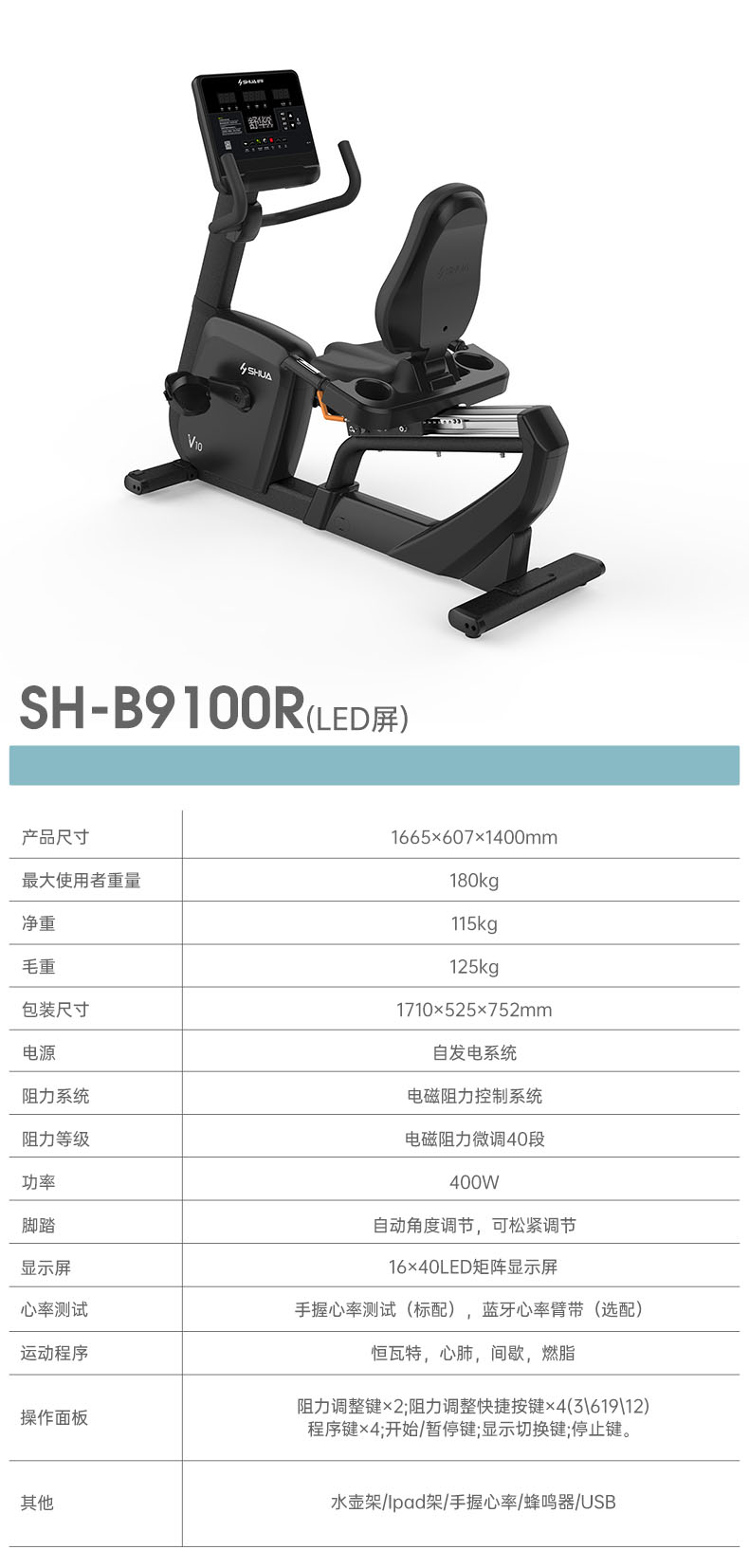 舒華/SHUA V10商用自發(fā)電臥式健身車(LED屏) SH-B9100R
